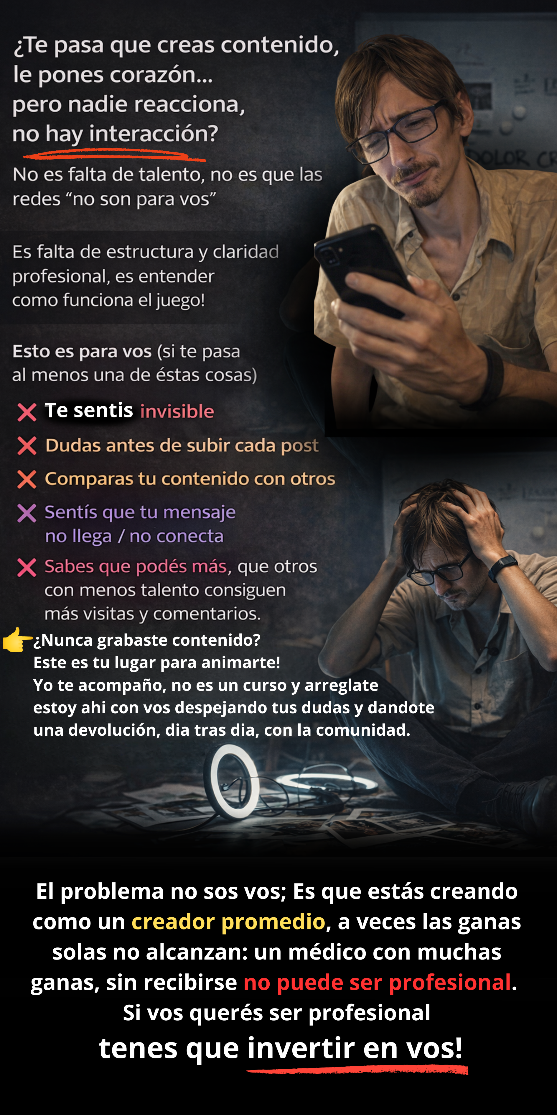 No. Este curso está pensado justamente para creadores normales, los que sienten que hacen contenido pero no logran verse ni sentirse PRO todavía. Arrancamos desde donde estés.