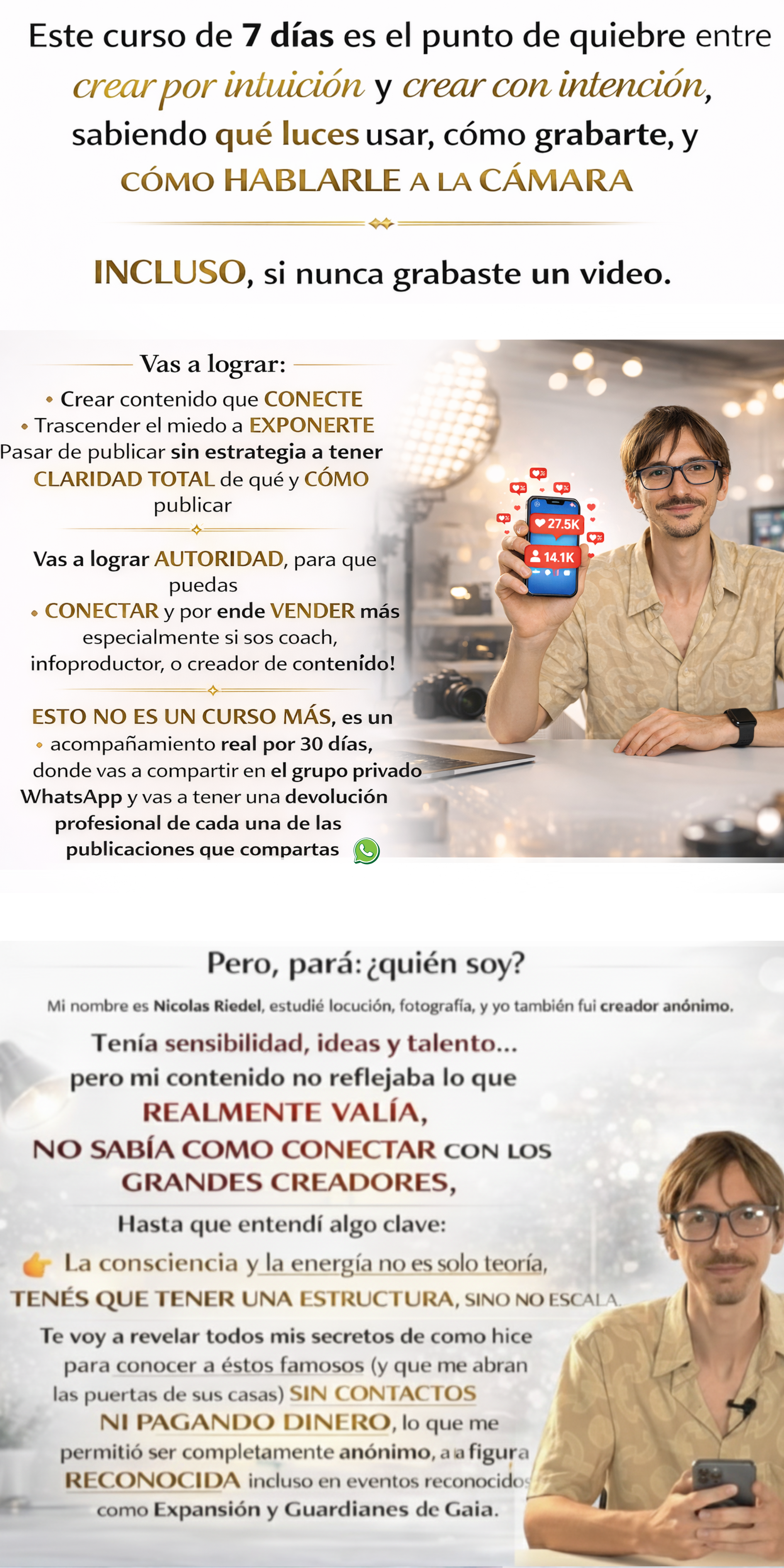 Al contrario. Este curso está diseñado para que tu esencia se vea mejor, no para que copies a nadie ni sigas fórmulas vacías. Creo mucho en energías, frecuencias, y entiendo que es parte de uno. Pero que una imágen se vea mas profesional, el contenido mas cuidado, habla de que estás en una mejor versión tuya, que subiste de nivel, y eso se percibe a kilómetros.